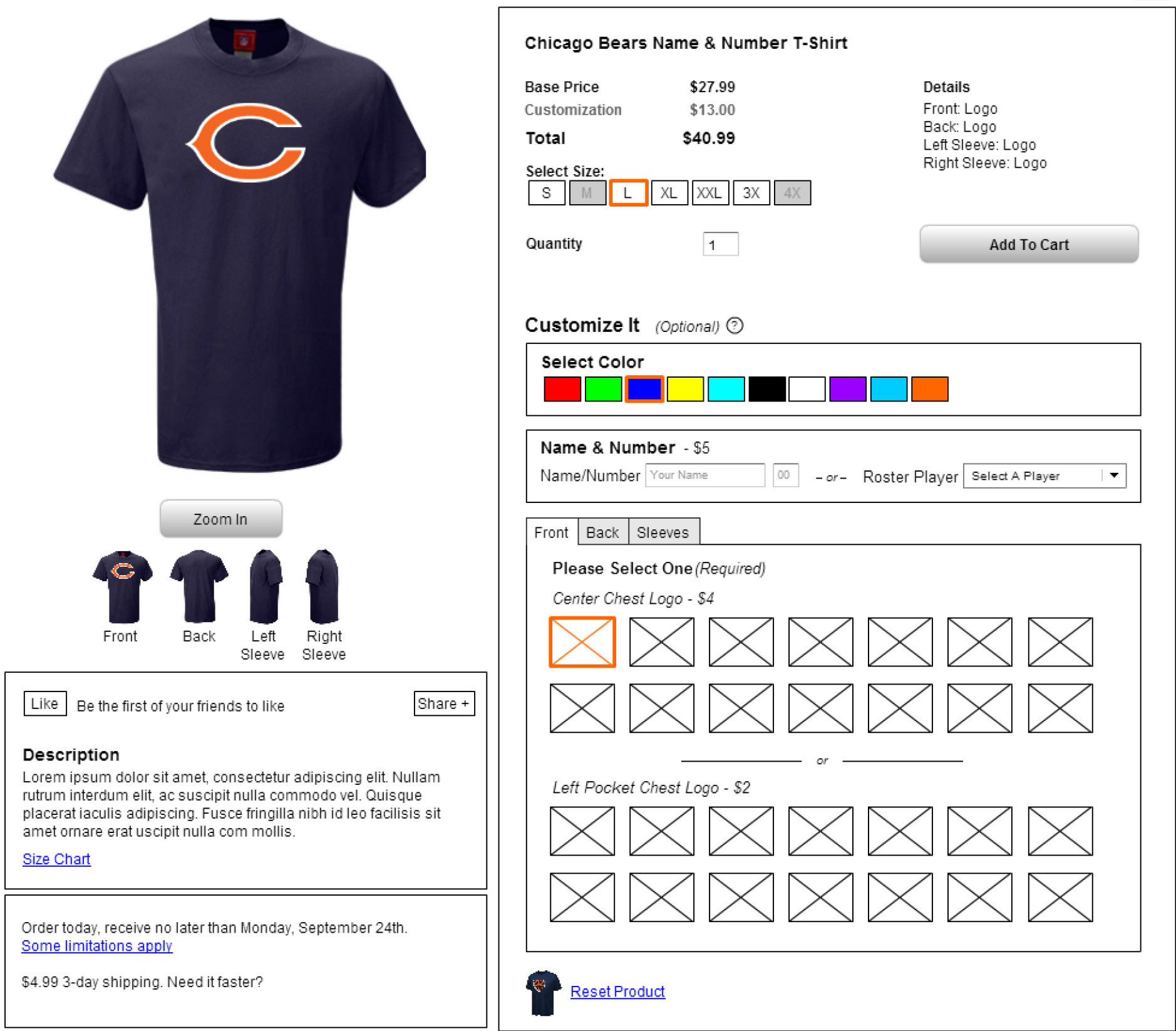 An additional piece of the redesign was a custom apparel configurator. Fanatics has a ton of affiliate sites, spanning the NFL, NBA, NCAA, NHL, Nascar and more. All these different properties sell a variety of different product. In order to accommodate all those factors, the configurator I designed was flexible not only in respect to the type of product, but was easily themed for use across Fanatics's portfolio of eCommerce sites.